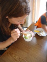 できあがった「カルピス」シャーベットを、おやつ会に先駆けてちょっと味見してみると、