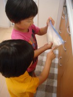 「また凍ってからお手伝いしてね~」と言うと、「早く冷たくならないかな♪」と、