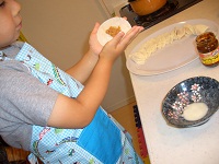息子もエプロン姿でお手伝い!簡単なので、子供と一緒に作れるのもいいですね。