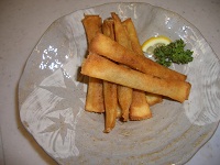今回、餃子の皮と春巻きの皮で包んでみました。